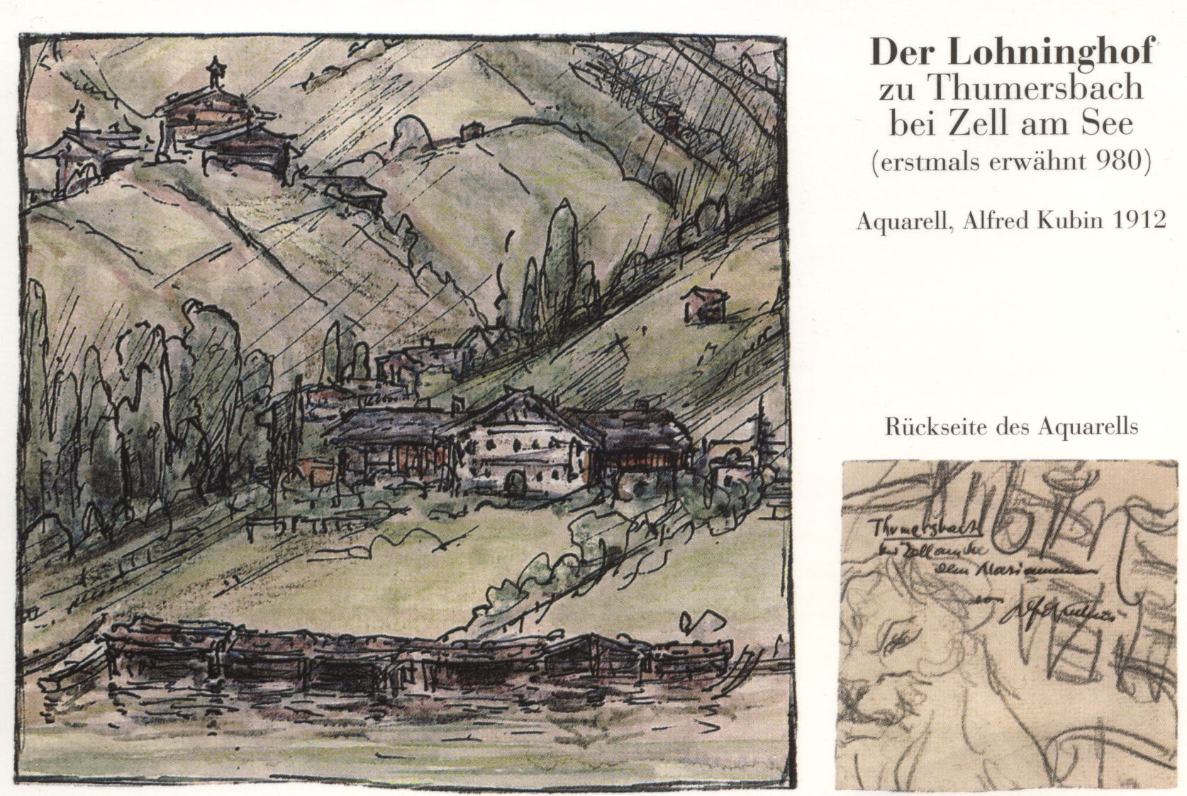 Der Grafiker, Maler und Schriftsteller Alfred Kubin wurde am 10. April 1877 in Leitmeritz in Böhmen geboren. 1883 zog die Familie aufgrund der Anstellung des Vaters als Geometer nach Zell am See, wo Kubin einige Jahre seiner Kindheit verbrachte. Über Zell am See sagte Kubin später: „Dieses kleine Hochgebirgsdorf bildet den eigentlichen Hauptschauplatz meiner Kindheit. [...] Gerne lag ich an einer abschüssigen Stelle des Seeufers oder am Kanal im Moor und schaute lange in die durchsichtige Tiefe.“