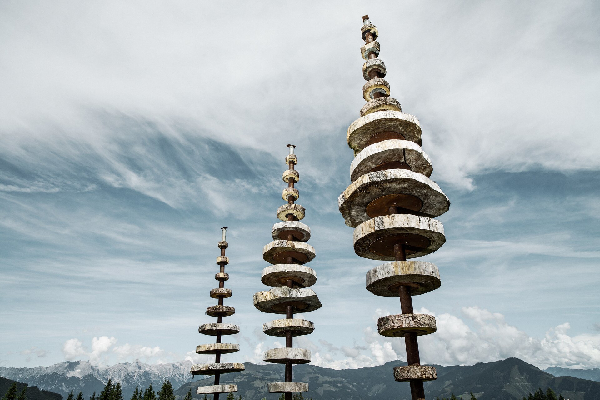 Ein überdimensionaler Tisch, Pyramiden aus Holz, von Hand gemeißelte Spuren im Stein: Wer auf der Schmittenhöhe wandert, wagt gleichzeitig einen Ausflug in einen einzigartigen Freiluftkunstraum.