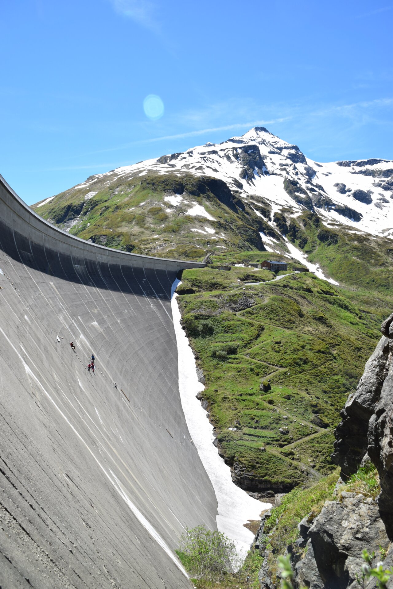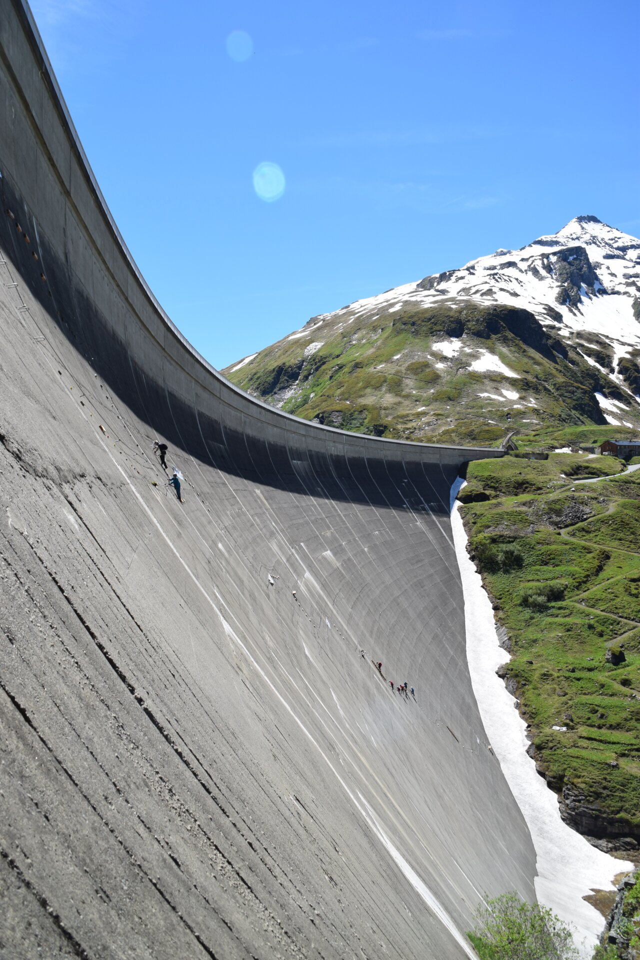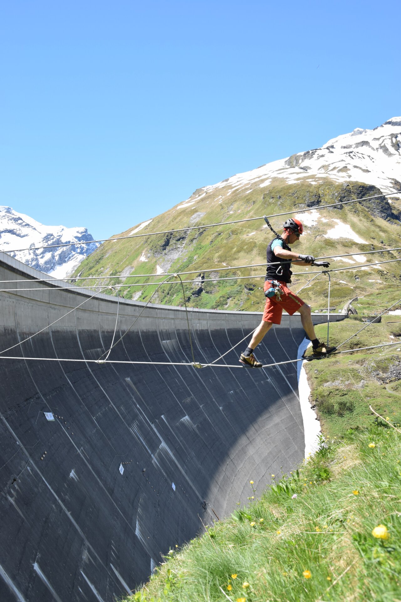 Schon die Anreise zu diesem Abenteuer ist ein kleiner Vorgeschmack darauf, was dich bei deinem Kletterabenteuer erwartet. Der Shuttlebus, der die Besucher zu den Hochgebirgsstauseen Kaprun bringt, hält in der Nähe der Staumauer. Dann folgt ein etwa zehnminütiger Fußmarsch, bis wir vor ihr stehen: Massiv, mächtig und ein wenig respekteinflößend baut sich die Staumauer inmitten der Bergwelt auf.