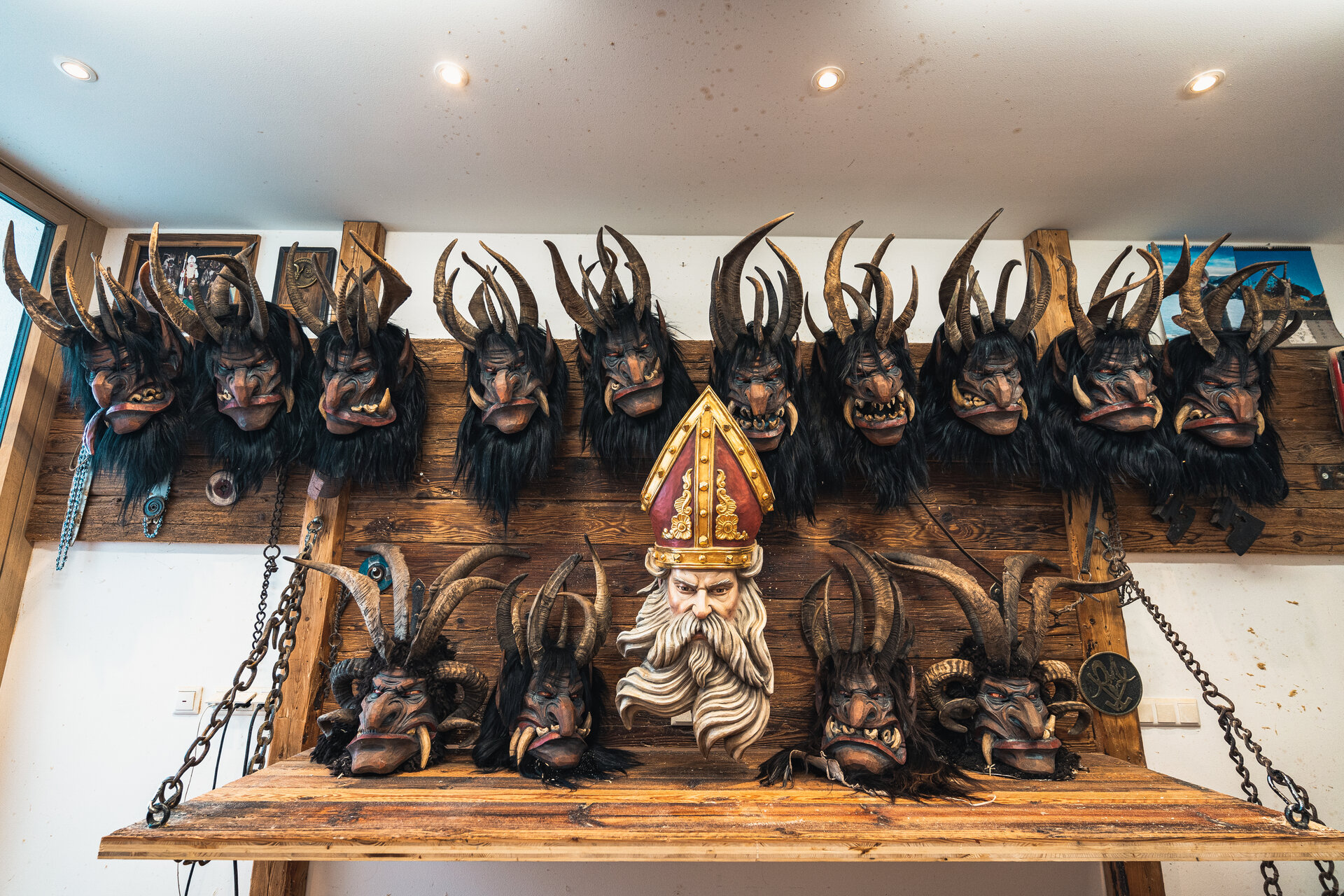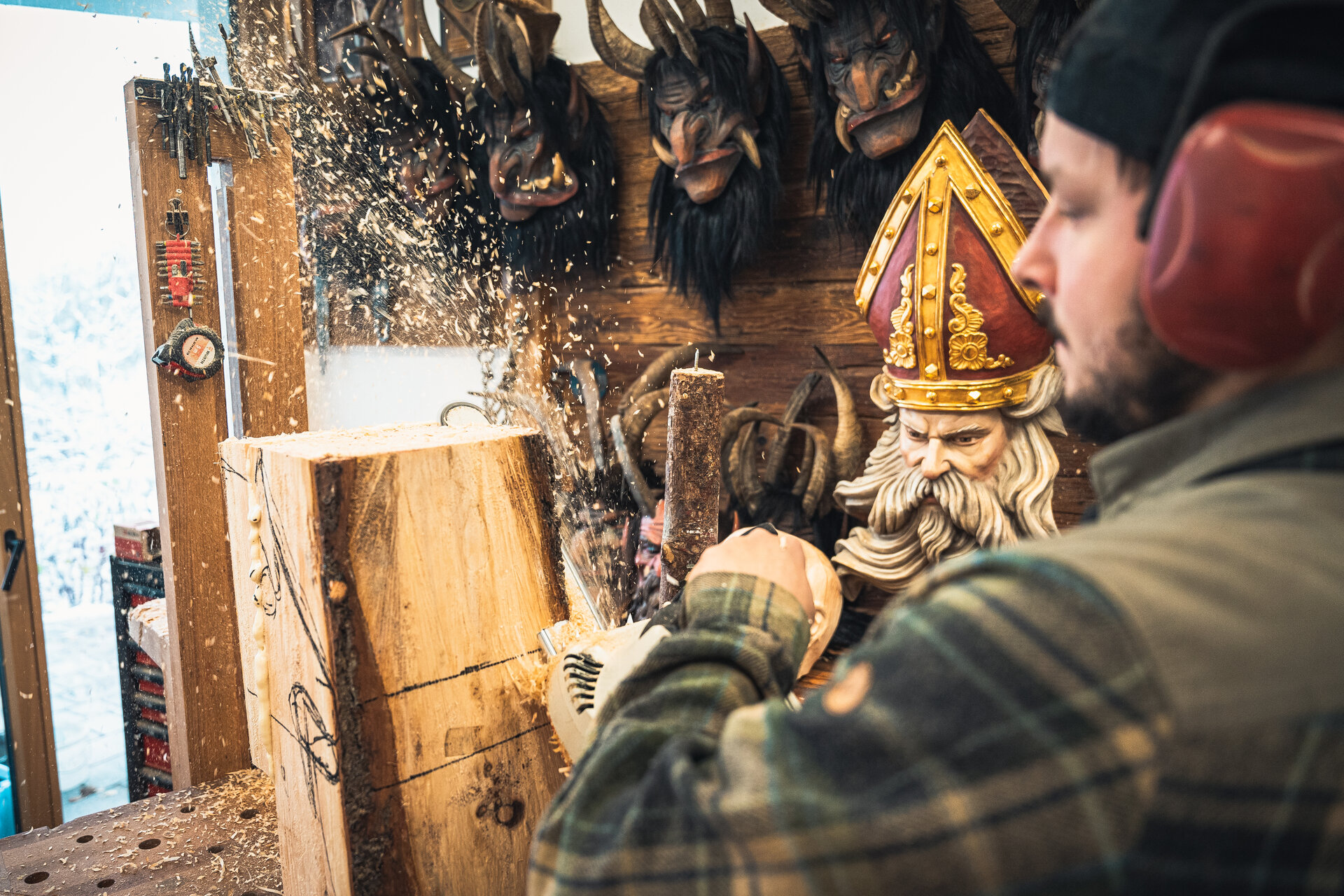 Wenn es in den Tagen rund um den 5. und 6. Dezember dunkel wird, kann man sie schon von weitem hören – und dann schlägt selbst den Mutigen das Herz ein bisschen schneller: Die Krampusse sind unterwegs! Ihr unheimliches Aussehen haben sie auch Arthur Moinat zu verdanken: Der Holzschnitzer fertigt die kunstvollen Masken für Krampusse und Perchten. Wir haben ihn in seiner Werkstatt in Zell am See besucht und mit ihm über Tradition, die Faszination des Furchterregenden und seine Begeisterung für das Holzschnitzen gesprochen.