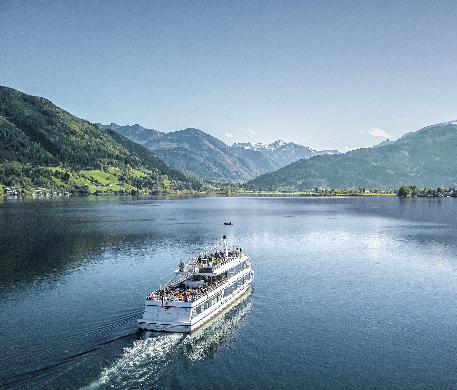 Der Zeller See ist das Herzstück der Region. Was liegt also näher als direkt auf dem See zu heiraten? Eine Trauung ist auf dem Ausflugsschiff MS Schmittenhöhe oder einem der drei Charterschiffe, darunter das Nostalgieschiff Libelle, möglich. Hier schipperst du wortwörtlich auf ruhigem Gewässer in den Hafen der Ehe und feierst mit bis zu 85 Personen. Auch größere Hochzeitsgesellschaften sind auf Anfrage möglich. Alle Infos dazu erhältst du unter infocenter@schmitten.at.
