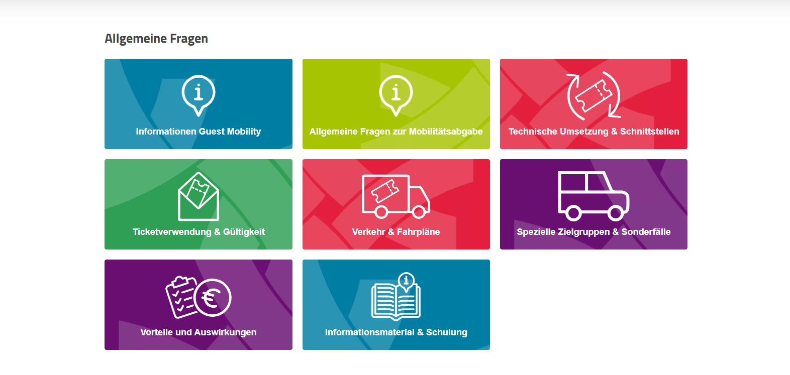 Im unteren Seitenbereich gibt es dort allgemeine Informationen zum Guest Mobility Ticket, Informationen zur Mobilitätsabgabe, Informationen zu Gruppenreisen und vieles mehr.